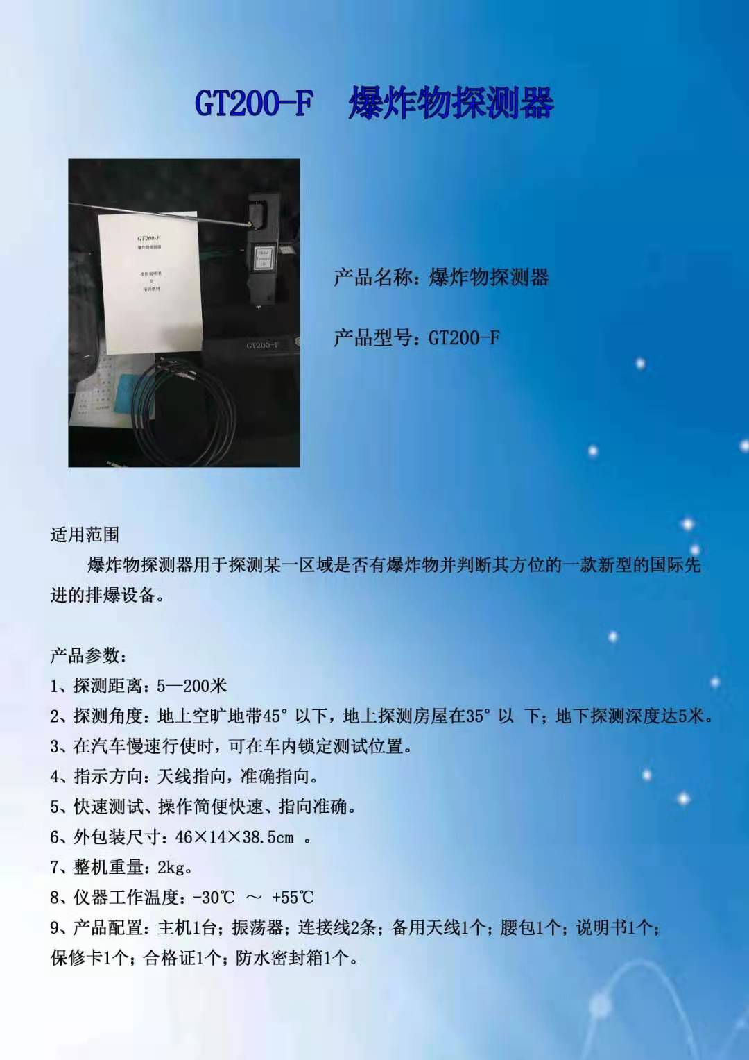 爆炸物探测器用于探测某一区域是否有爆炸物并判断其方位的一款新型的国际先进的排爆设备。