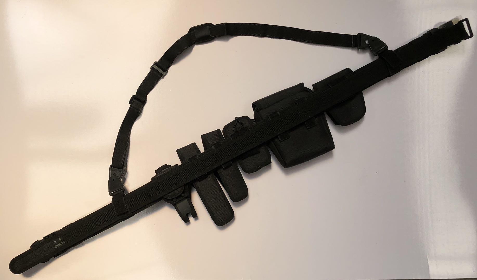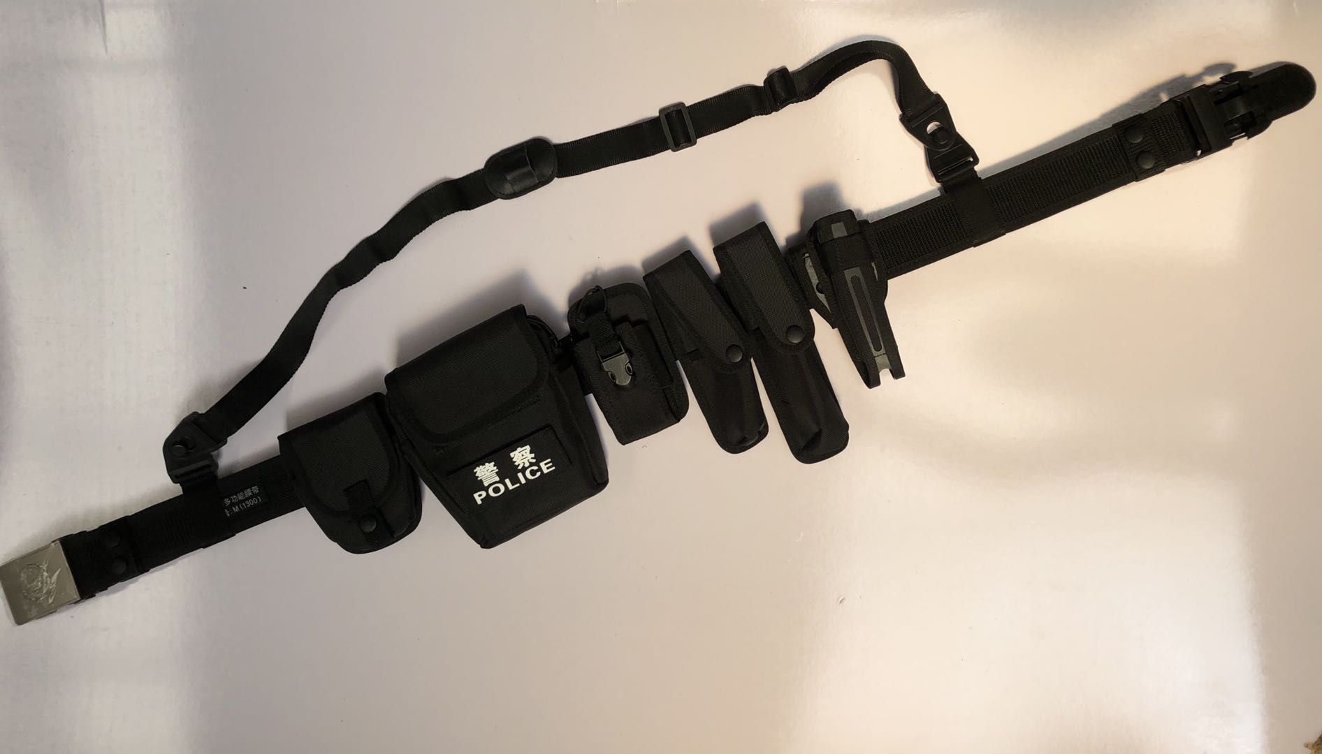 组成:腰带钎子,带体,斜挂带,内腰带,对讲机套,强光手电套,警用工作包,快拔机械棍套,手铐套,催泪喷射器套