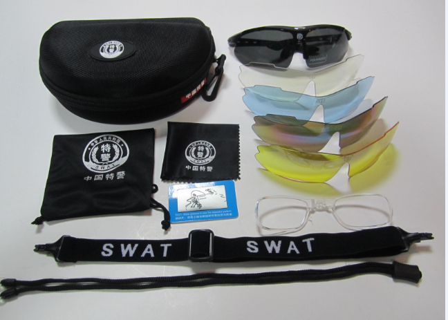十、近视框:近视架材质为PC材质,可根据是否近视,随意安排拆卸近视框。如近视的朋友可以到眼镜店配合适的近视镜片安装到镜框上,是最新技术的户外运动眼镜。(近视镜配镜须知:①:不建议近视度数在500度以上的人使用,由于度数过高,近视镜片会很厚,不仅加重了运动眼镜的整体重量,而且近视镜片太厚,贴近眼镜会影响视觉。②、不推荐配折射率较高的镜片,由于特警眼镜的近视架直径不大,所以对折射率值要求并不高的[折射率m值越高,近视镜片就越薄,市面上常见的最厚镜片折射率为1.49,最薄的精品阿折射率值为1.74,一般1.56m树脂片既可使用(最常见的普通折射率值镜片)]③、建议配近视镜片的时候,比矫正度数减配25-50度会更舒适一些。④、特警眼镜镜片本身具有防紫外线功能,镜片均有抗紫外线的功能,故配镜时不需要防紫外线,防辐射等加膜镜片,普通的树脂片就可以。)